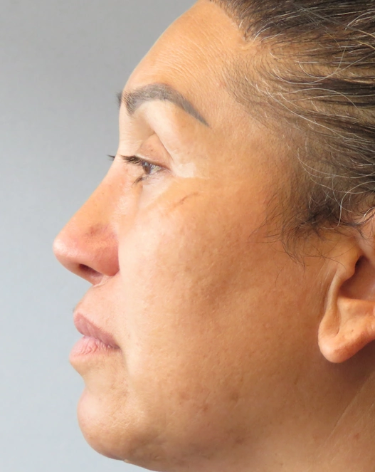 Patient underwent sinus setback, forehead remodeling, rhinoplasty, fat grafting