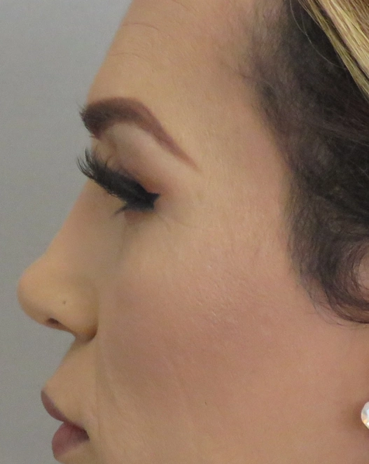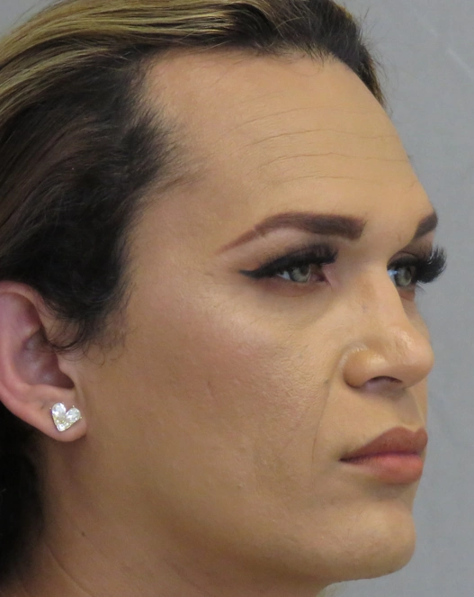 Patient underwent facial feminization, hairline advancement, forehead remodeling, sinus setback, septorhinoplasty, jaw contouring