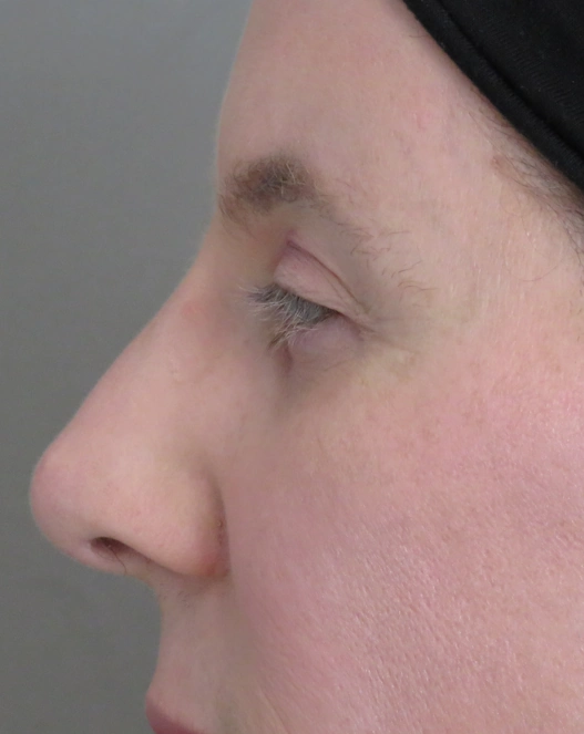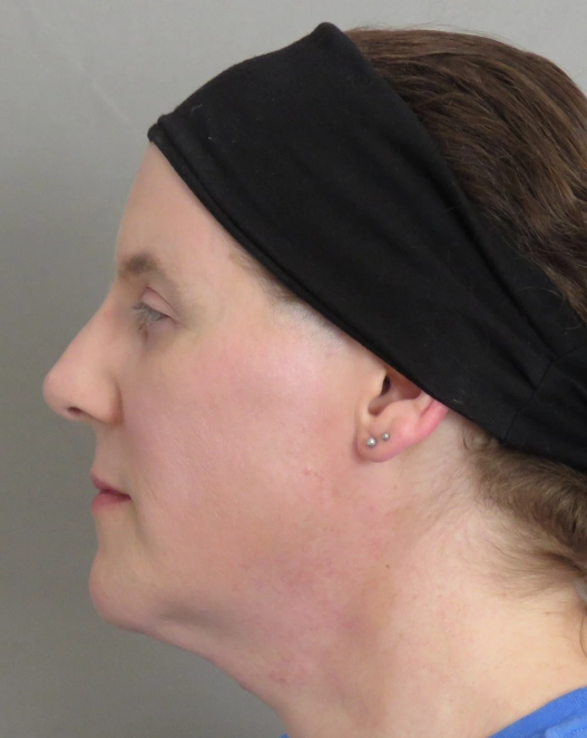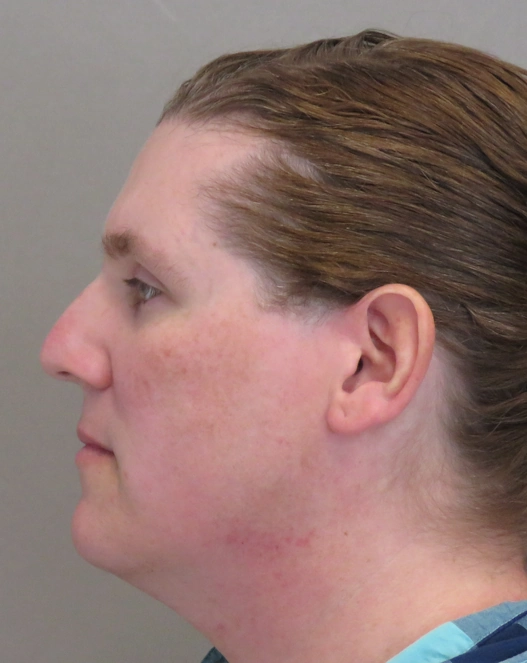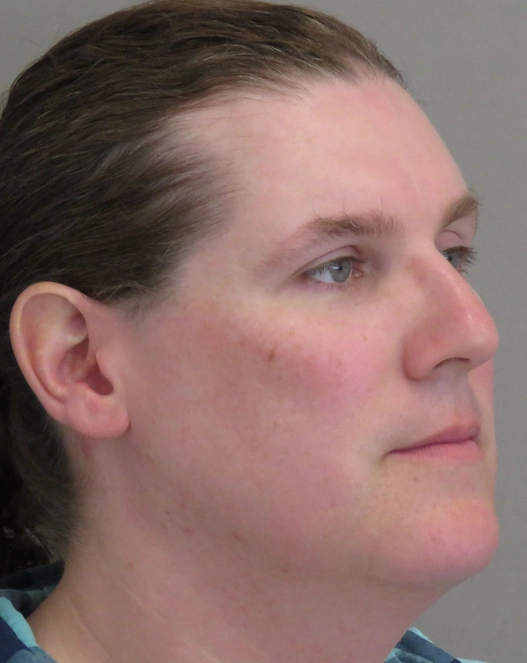 Patient underwent hairline advancement, frontal setback, forehead remodeling, rhinoplasty, genioplasty, fat grafting